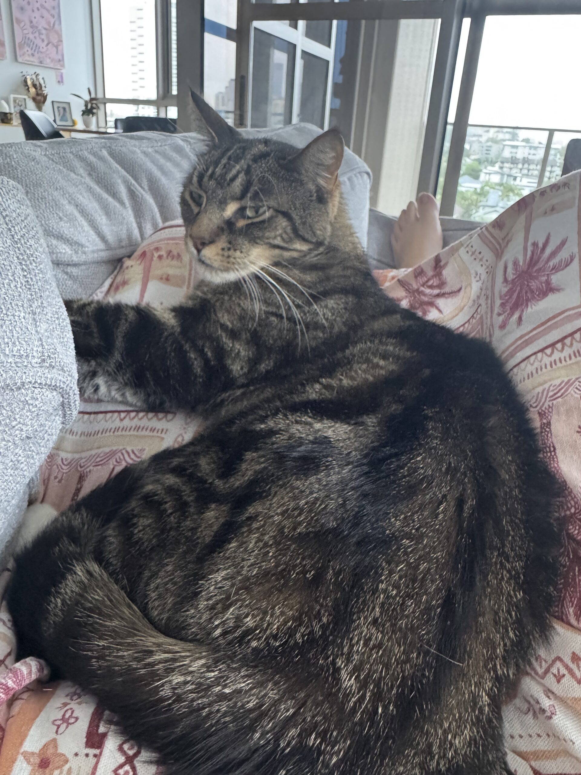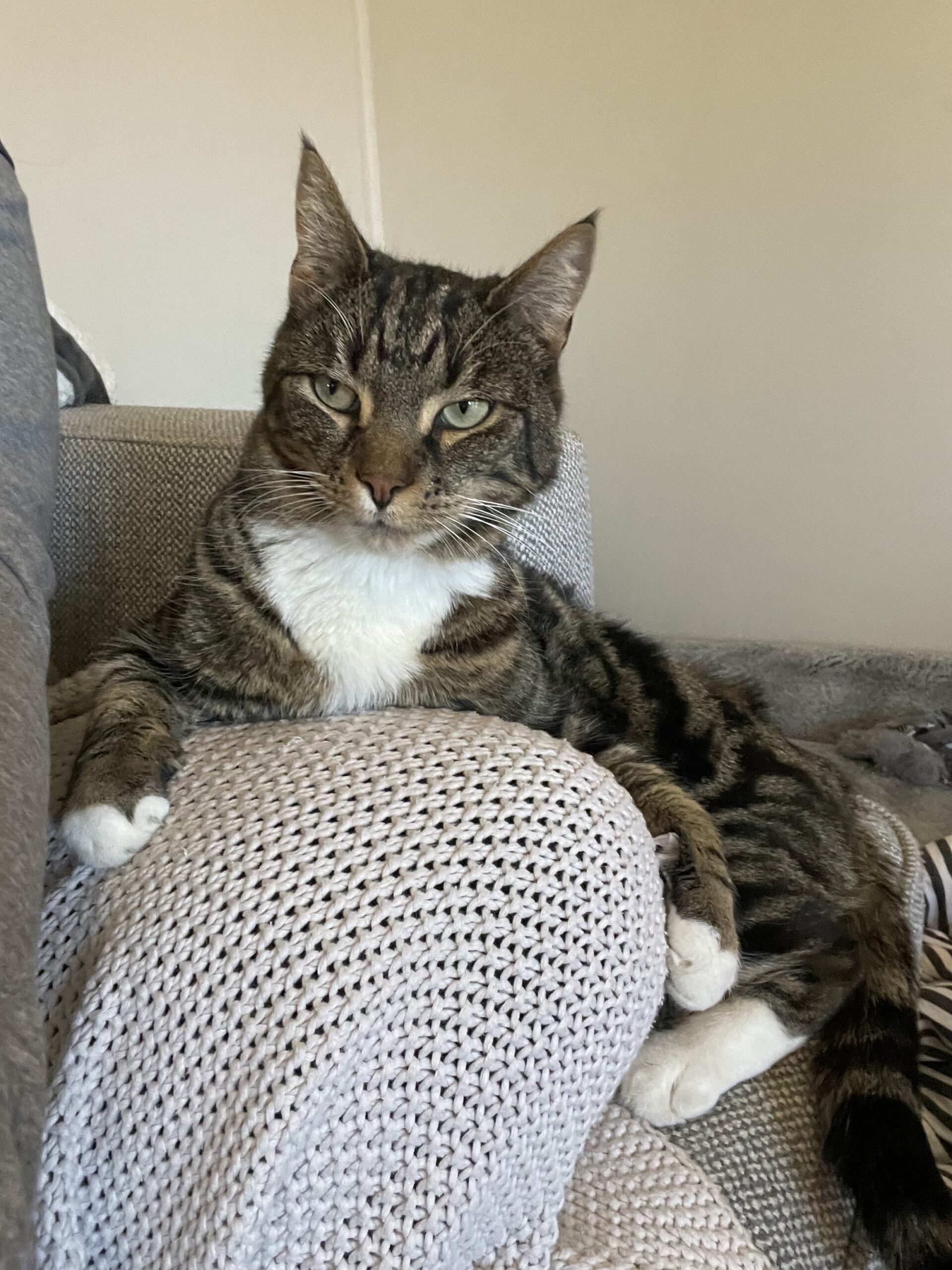 Diego is a deeply affectionate boy who thrives on love and close connections. He’s a cuddly boy who happily leans in for head bumps and one-on-one snuggle time, forming strong bonds with those he trusts. Having grown up alongside cats and calm dogs, Diego is friendly and social. He also enjoys exploring the outdoors and soaking up his surroundings before curling up for a well-earned nap.