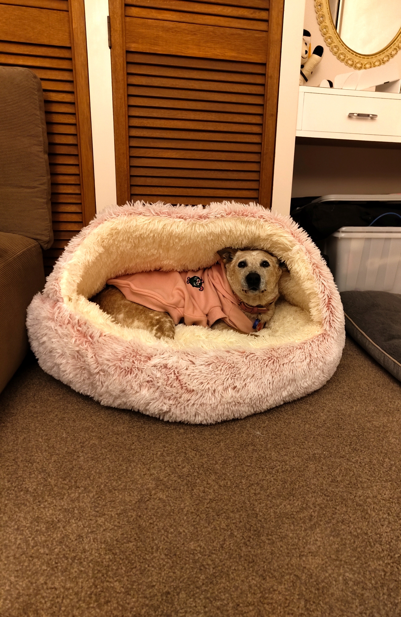 The adoption fee for Lilo is $650 and includes her food, bed, leash, harness, treats, and toys.