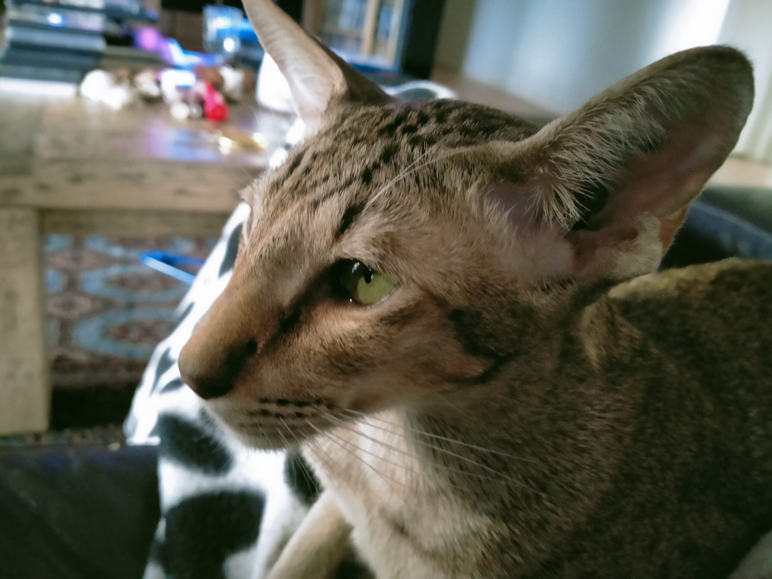 Nikko is an energetic and affectionate boy who loves spending time with his people. He enjoys curling up in cosy spots and engaging in interaction. Nikko is highly intelligent and expressive, understanding simple commands and often communicating his feelings with distinct vocalisations and his piercing, soulful gaze. He thrives on routine and enjoys his little daily rituals. Nikko loves supervised time outdoors, but returns indoors each evening to relax and be close to his family.